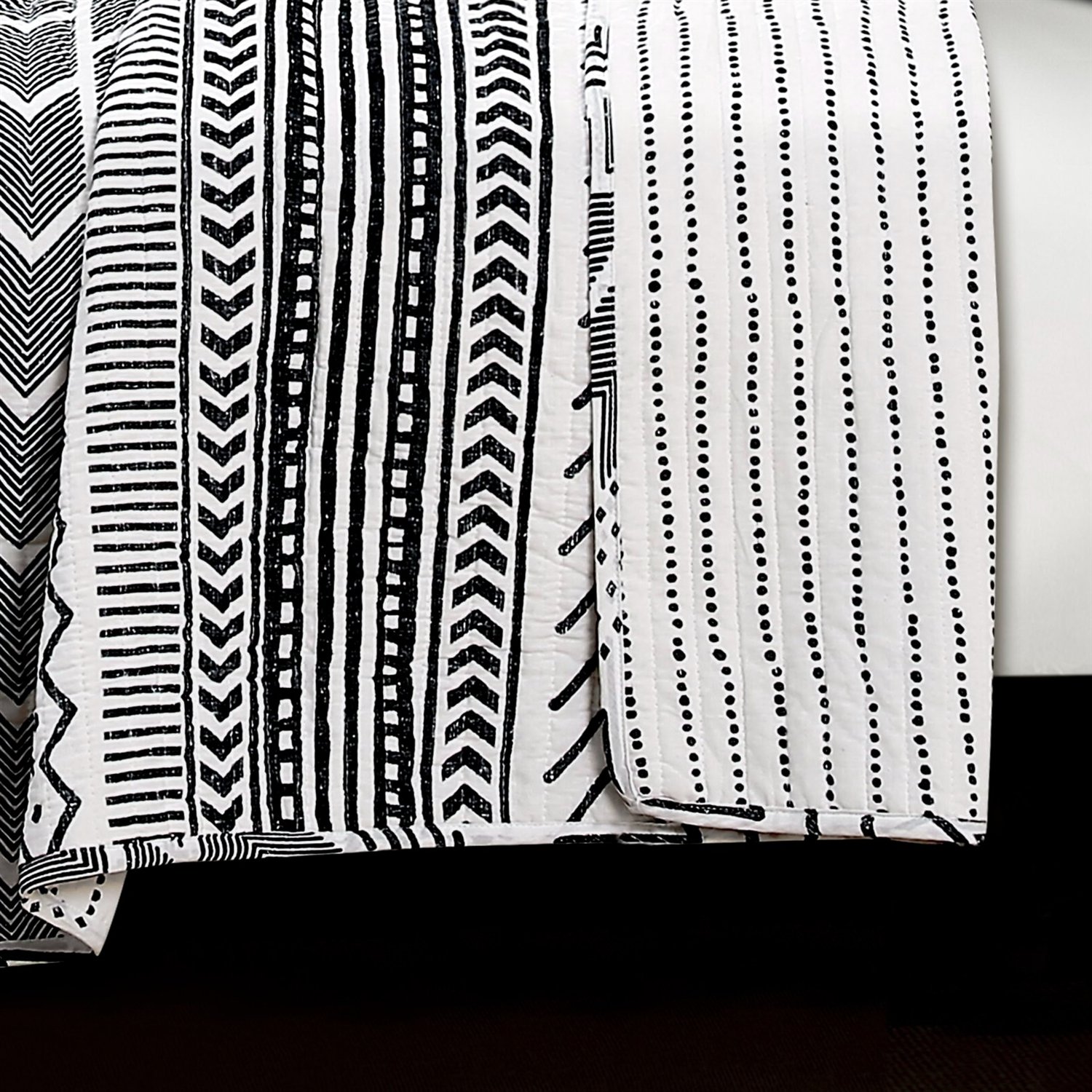 Home > King 3 Piece Scandinavian Style Chevron Black White Reversible Cotton Quilt Set